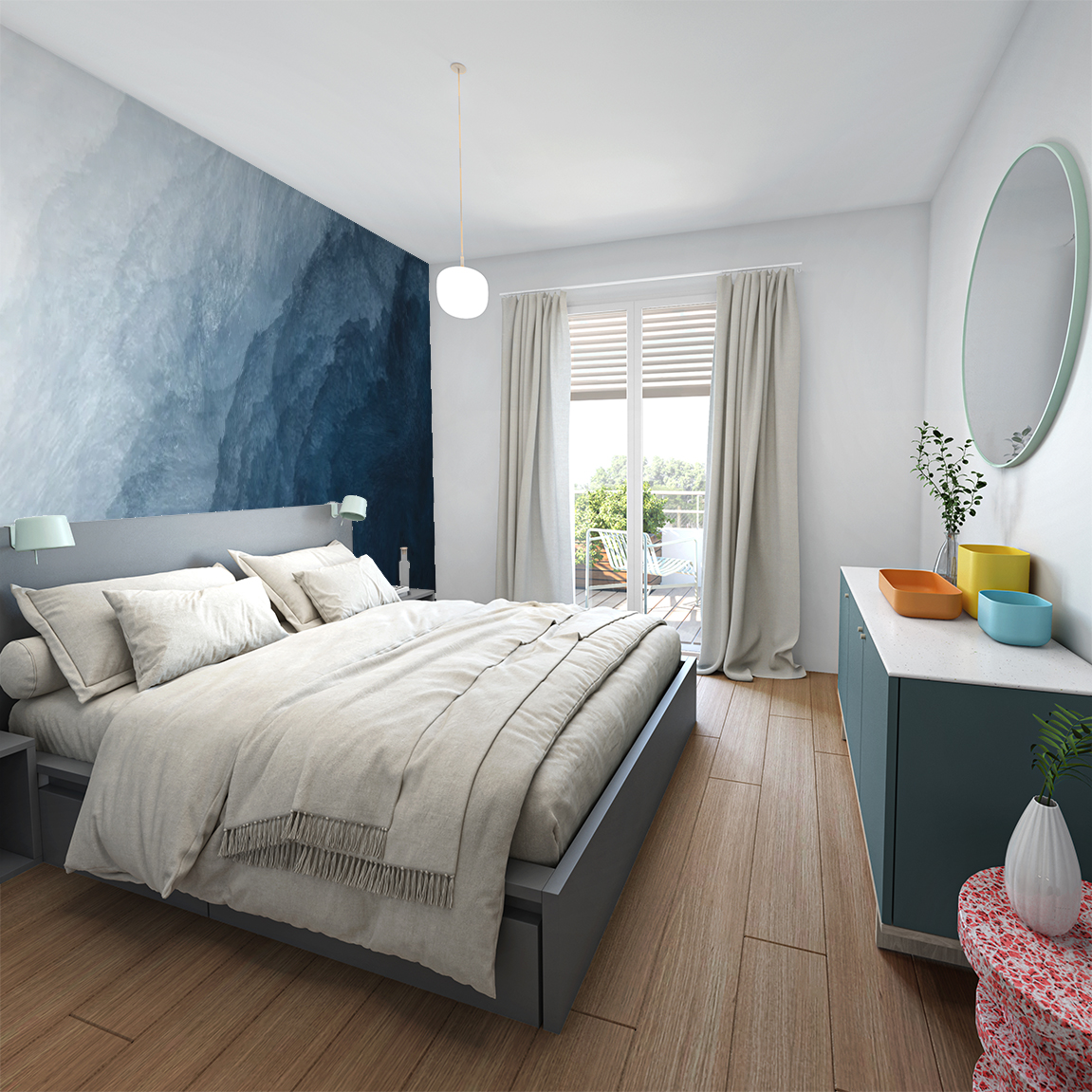 Soignée sous toutes les coutures jusque dans les moindres détails, habillée de teintes douces et lumineuses, l’architecture à la fois audacieuse et sobre permet à cette résidence de s’intégrer à merveille dans son environnement.